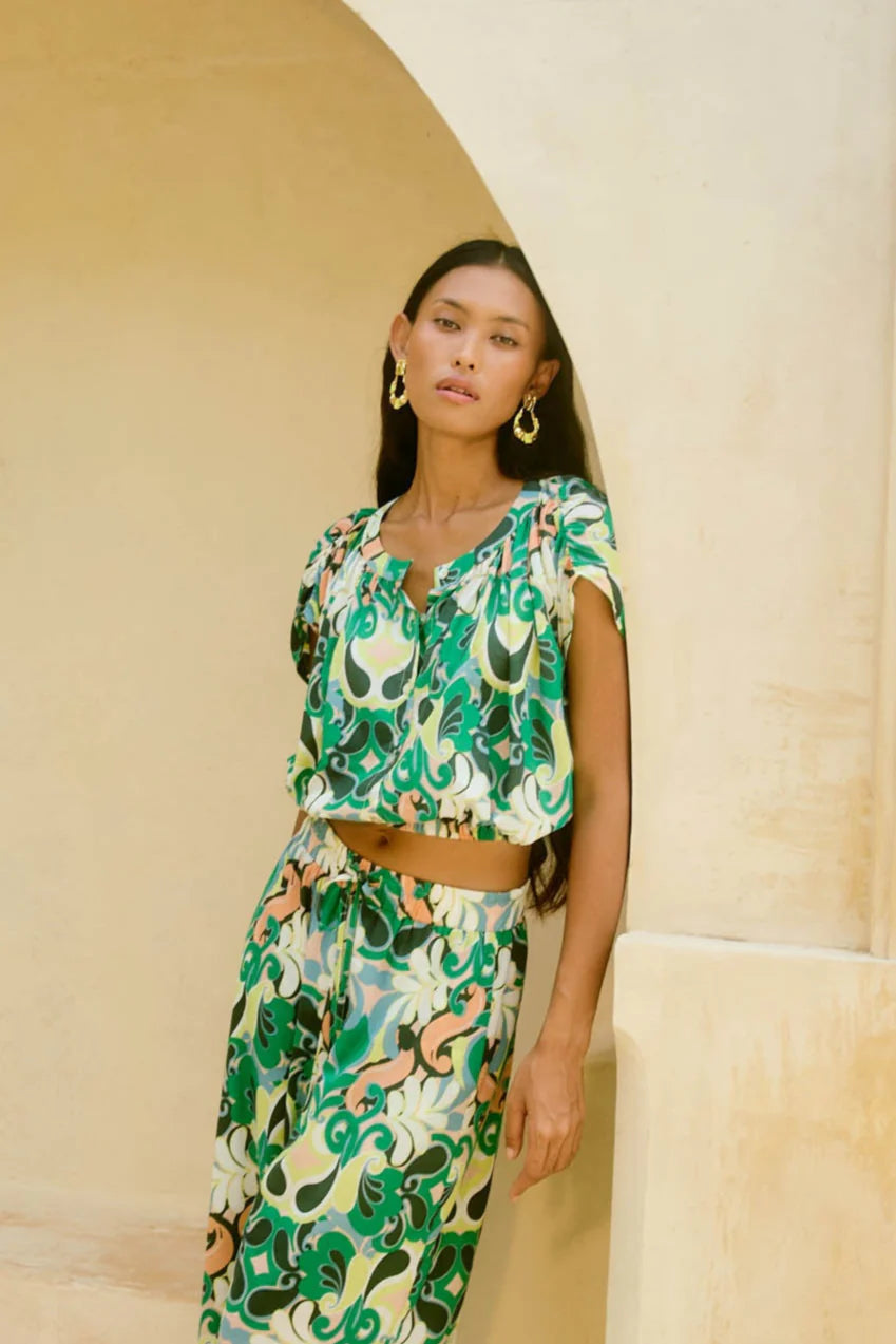 A versatile piece with considered detailing, the Aurora Reversible Crop Top is crafted from cotton voile and features a gathered elastic waist, shell buttons and a drop armhole. Wear it buttoned to the front or back for two looks in one.