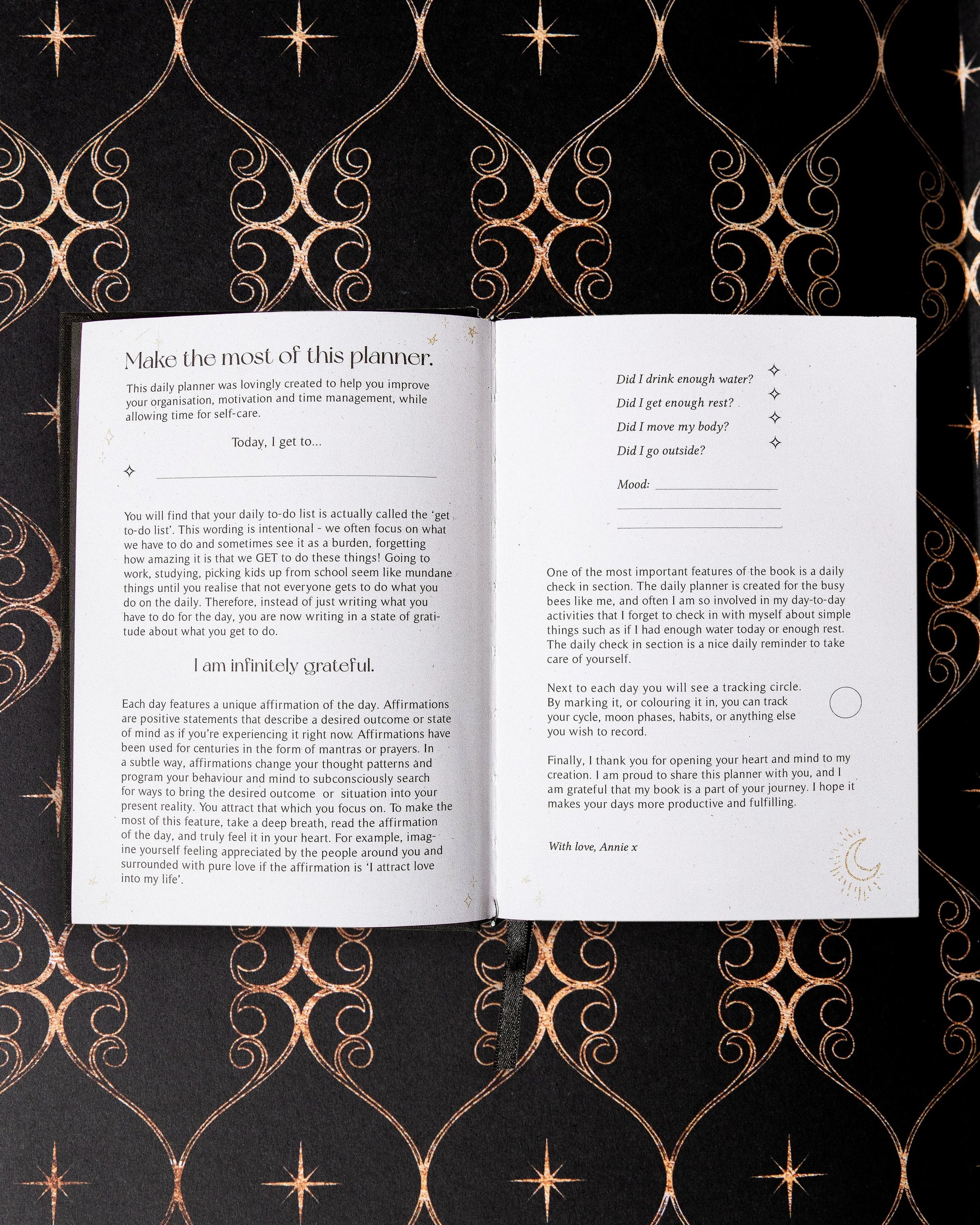 Dreamy Moons Daily Planner 2026 - Black and Gold