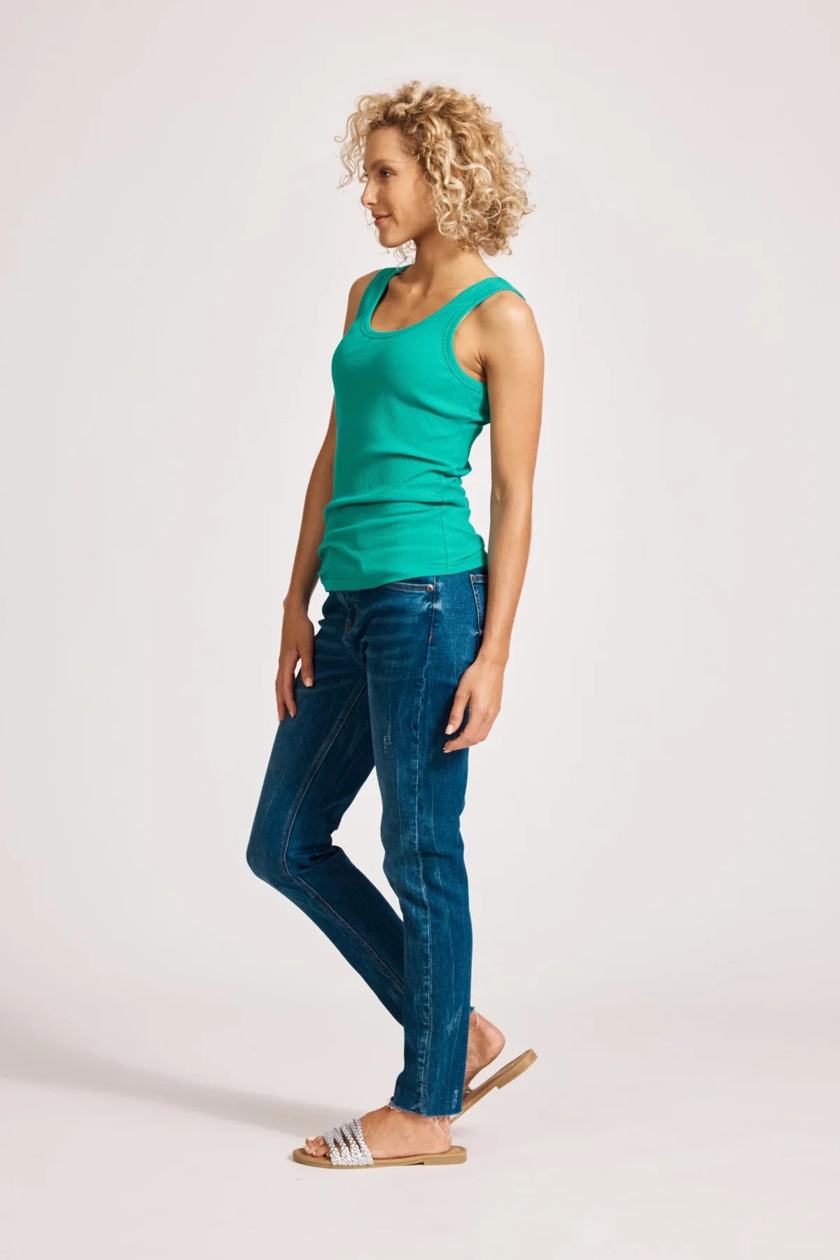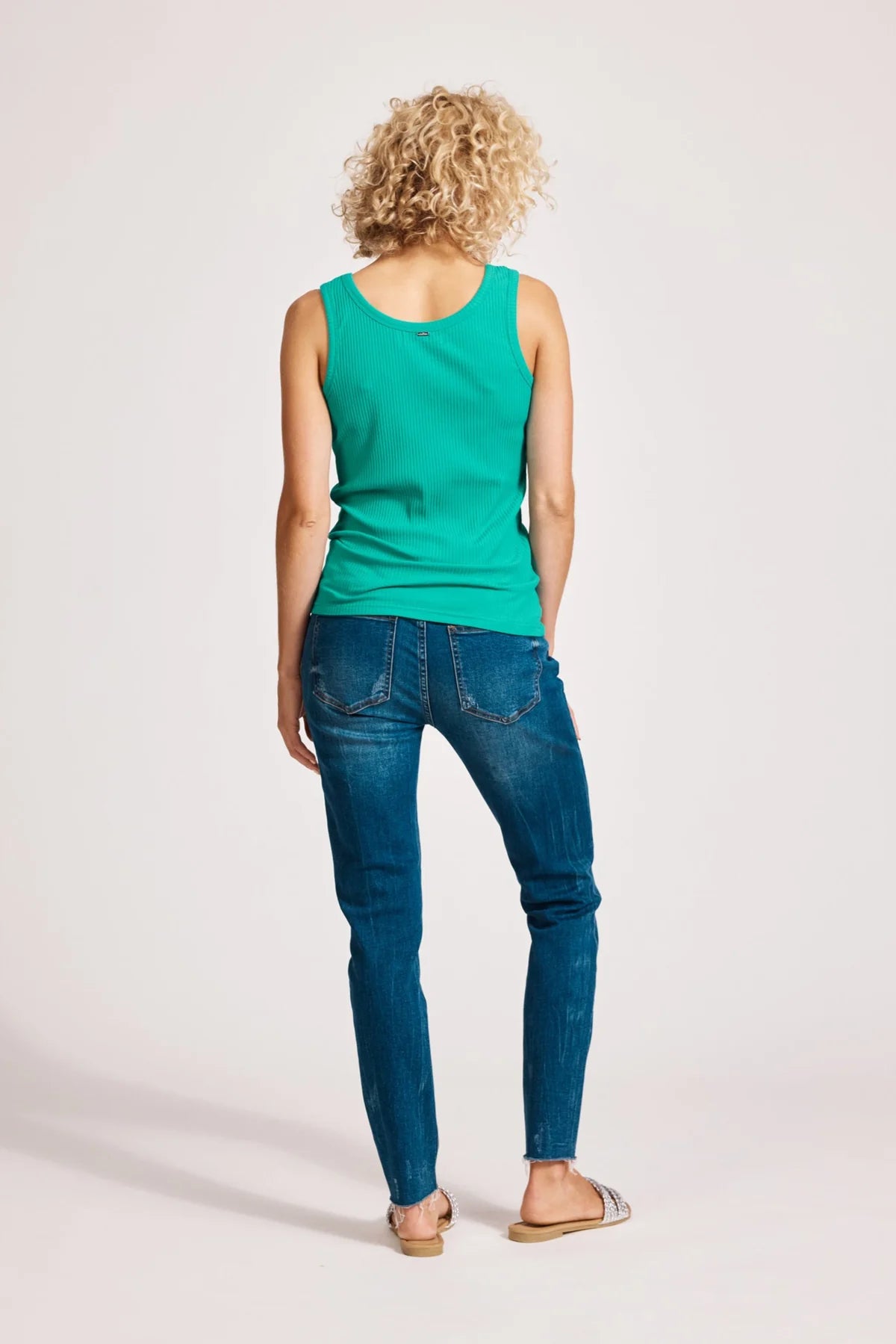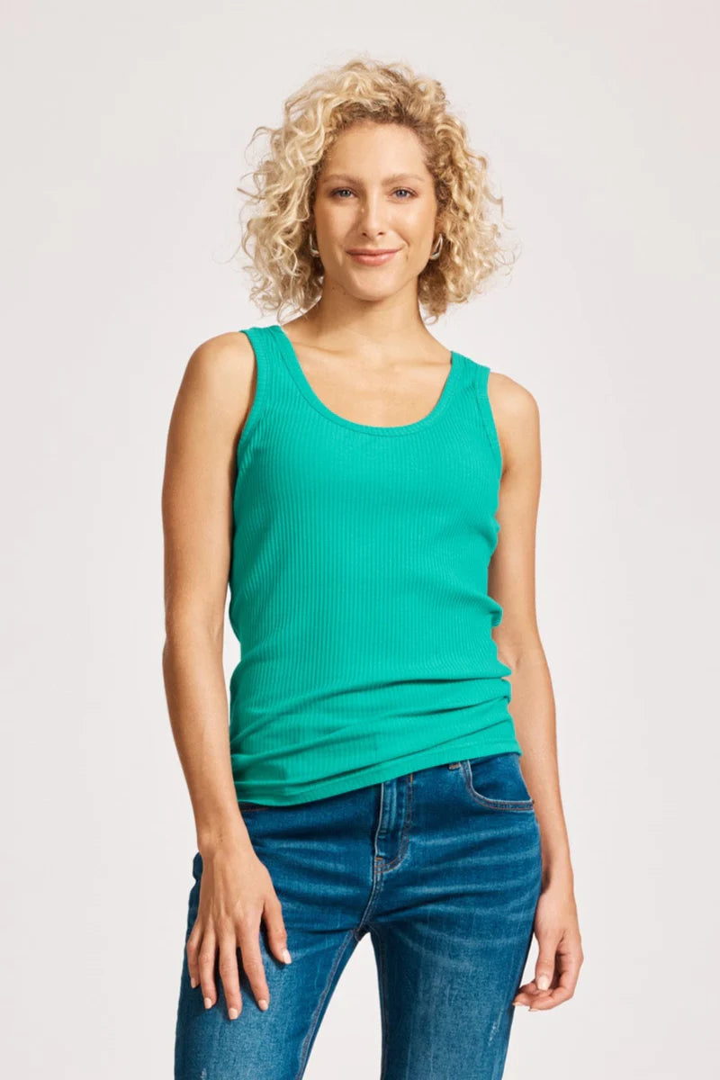 An essential summer staple. Crafted from cotton-rich ribbed fabric for comfort and stretch. Features a scoop neckline, sleeveless design, and small brand detail at the back neck.