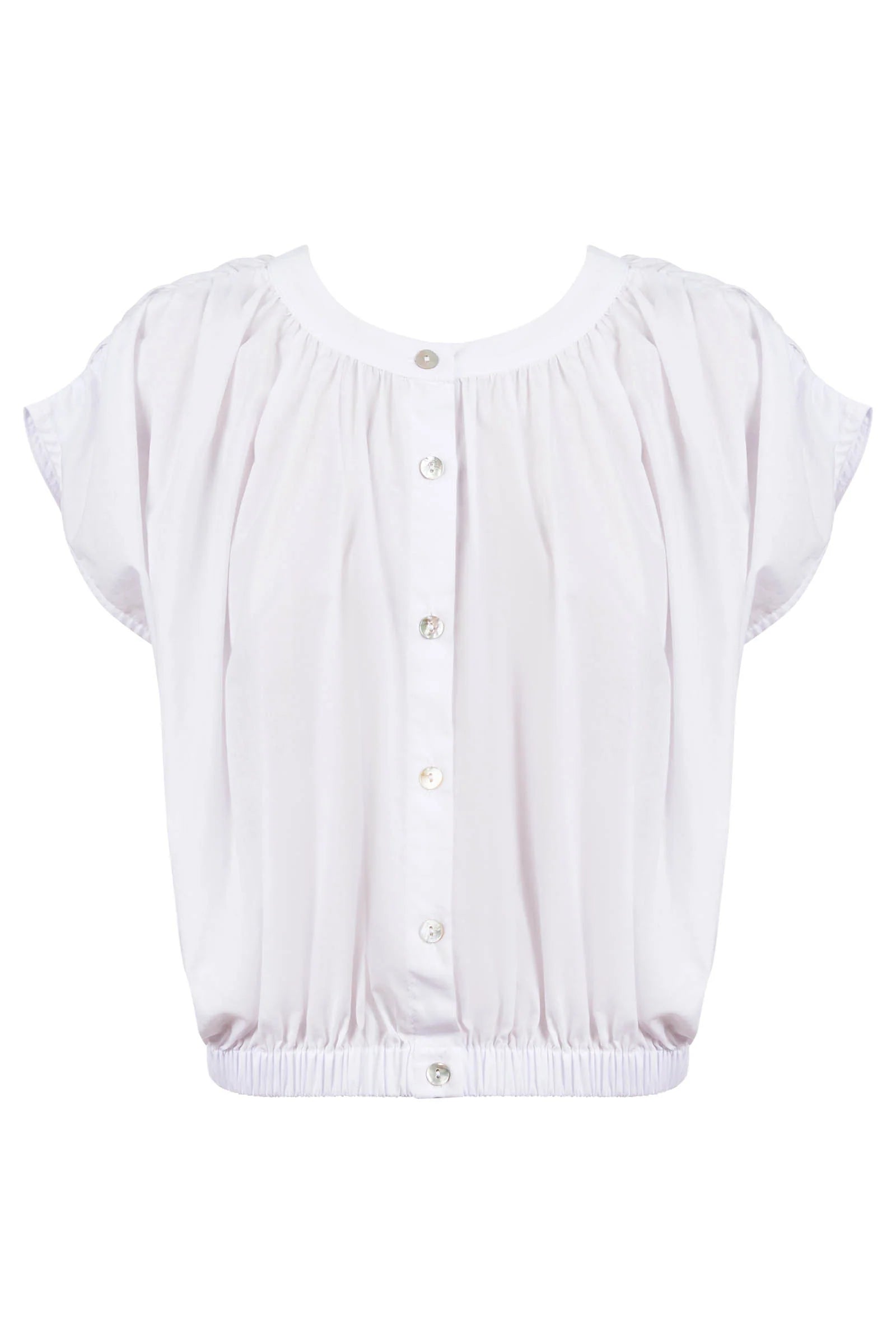 A versatile piece with considered detailing, the Aurora Reversible Crop Top is crafted from cotton voile and features a gathered elastic waist, shell buttons and a drop armhole. Wear it buttoned to the front or back for two looks in one.