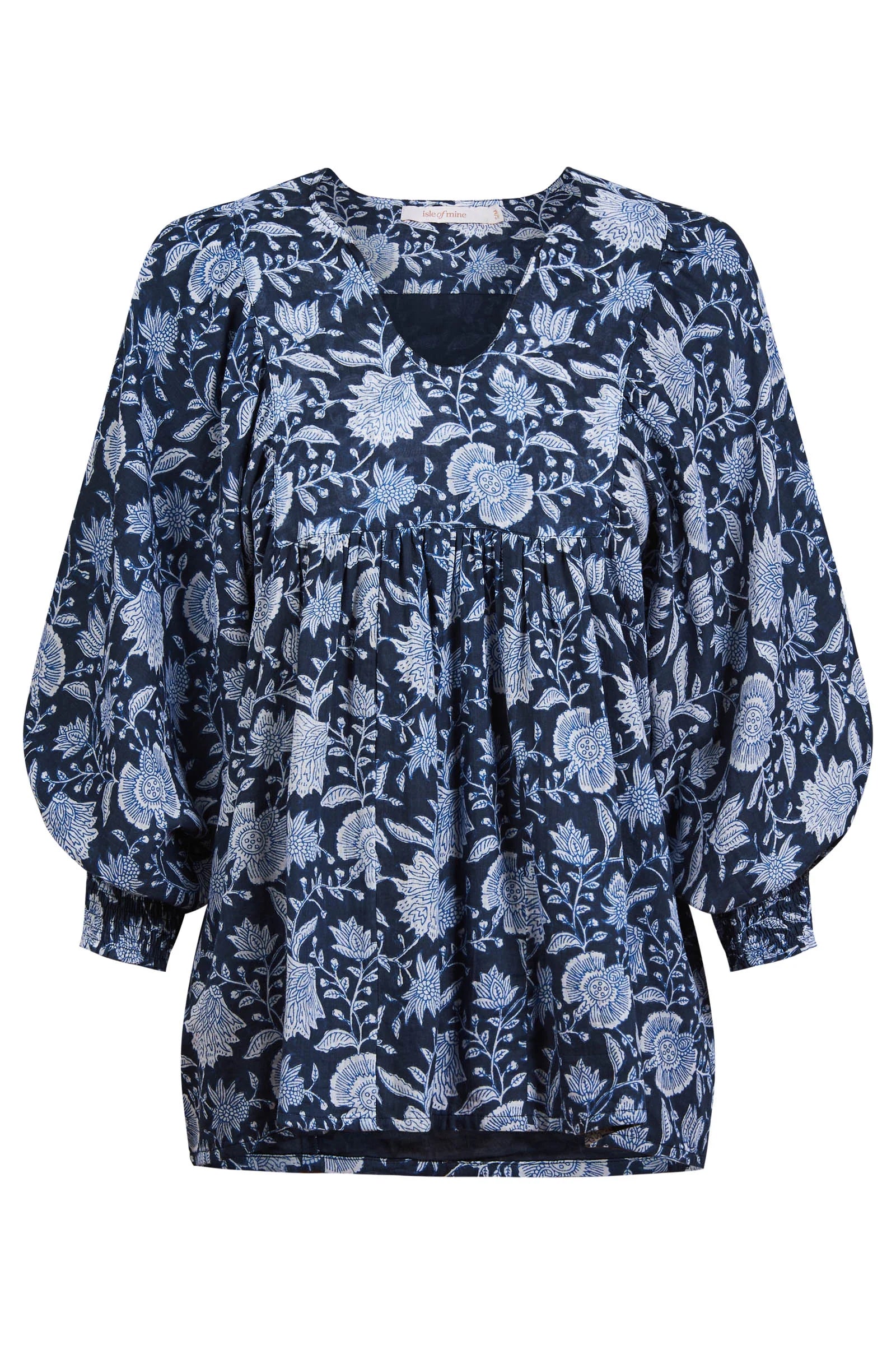 A colourful cotton voile piece with artisanal charm, inspired by floral hand-block. The Wilma Top is hand screen printed and features a soft front yoke, shirred 3/4 sleeves and a relaxed silhouette for a light, breezy feel.